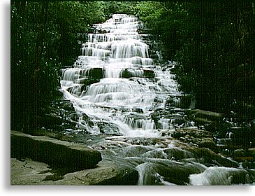 Directions: Take Warwoman Road east from Clayton for six mile. and turn right on Dick's Creek Road or Sand Ford Road. Drive .5 mile. and take a left across the creek. Go 3.5 mile. and cross second ford and park at Bartram Trail sign. Now follow trail north to Dick's Creek then follow creek to the falls.